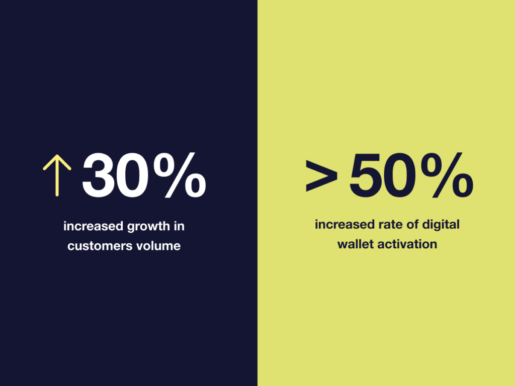 Outcome: 30% growth in customers and 50% activation rate of digital wallets